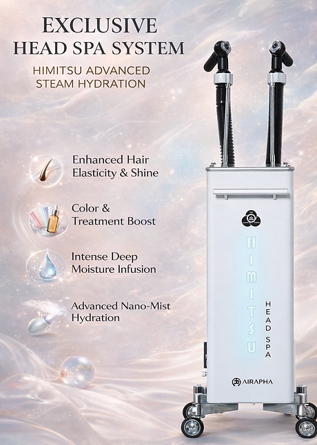 Powered by advanced Japanese nano-steam technology, this ritual delicately infuses moisture deep into the scalp and hair fiber, enhancing elasticity, shine, and overall balance without harsh heat or chemical stress.